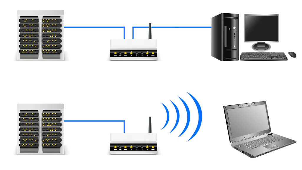 This encompasses both wireless (Wi-Fi) and wired (Ethernet) networking solutions, allowing devices to connect to the network either through wireless signals or physical cables, providing users with flexible and reliable connectivity options.